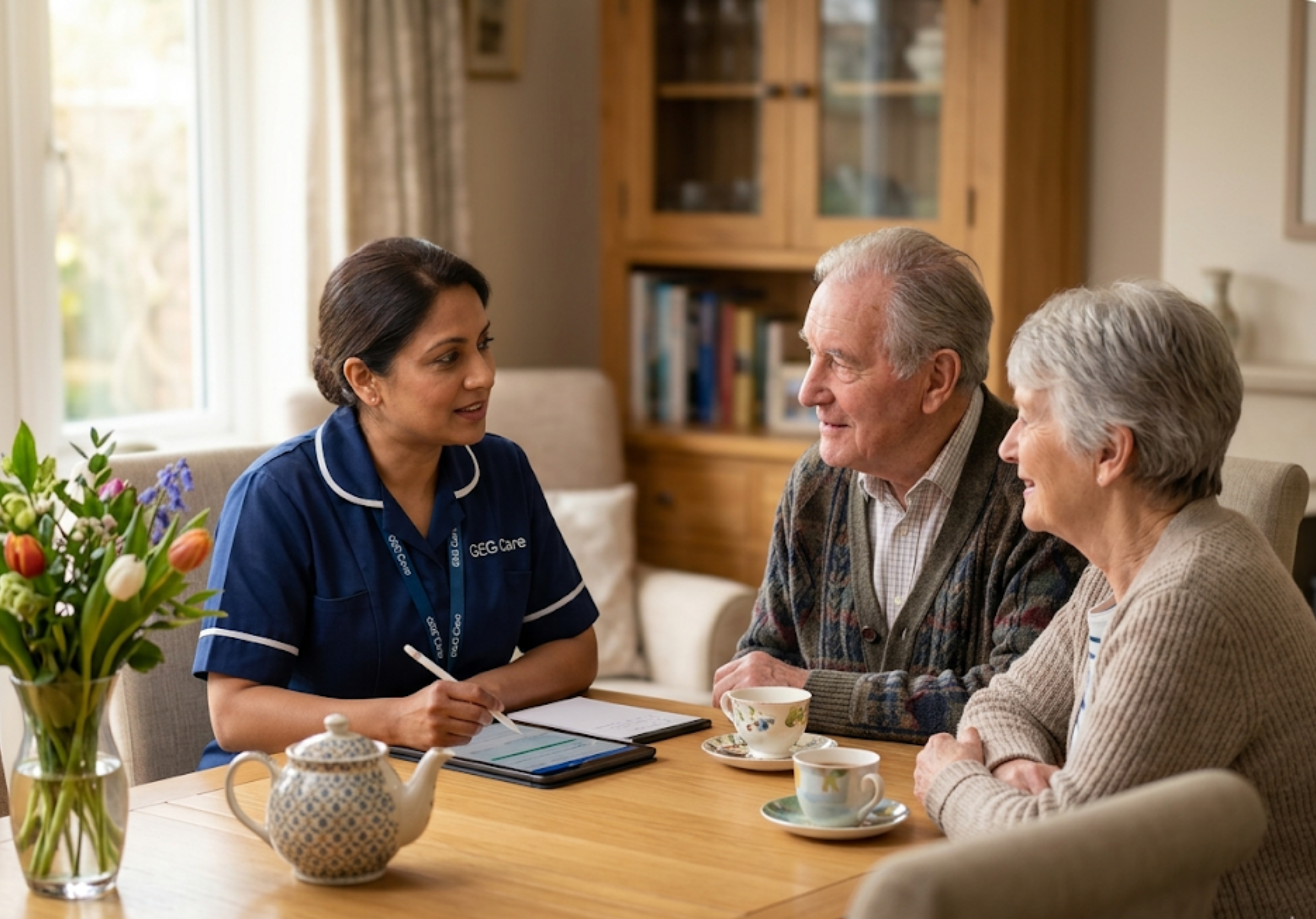 ![A GEG Care specialist conducting a free home care assessment with an elderly couple in [LOCATION], discussing personalised care options at their dining table.](/book-assessment-trust.png)
