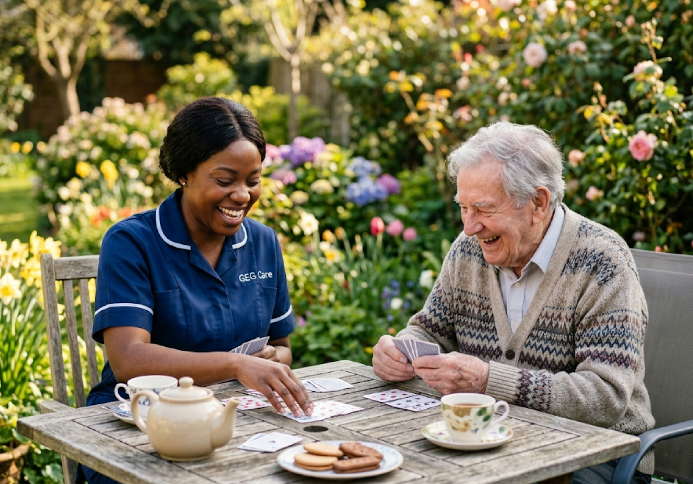 ![A GEG Care companion carer sharing a joyful card game with an elderly male client in the garden during a companionship home visit in [LOCATION].](/companionship-hero.png)